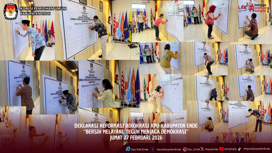#temanpemilih, KPU Kabupaten Ende menggelar Deklarasi Reformasi Birokrasi di Aula KPU Kabupaten Ende, Jumat (27/2/2026). Kegiatan tersebut menjadi penegasan komitmen kelembagaan dalam memperkuat tata kelola organisasi yang profesional, transparan, dan akuntabel. Deklarasi Reformasi Birokrasi dibuka secara resmi oleh Ketua KPU Kabupaten Ende, Wilhelmus Hermanto Lose. Dalam arahannya, ia menegaskan bahwa reformasi birokrasi bukan sekadar agenda administratif, melainkan sebuah tanggung jawab moral dan institusional sebagai penyelenggara pemilu. Ia menekankan pentingnya disiplin, transparansi, dan akuntabilitas dalam setiap tahapan kerja, mulai dari perencanaan, pengelolaan anggaran, hingga pelayanan informasi kepada masyarakat. Seluruh jajaran diminta memiliki komitmen yang sama dalam membangun budaya kerja yang bersih, profesional, dan berorientasi pada pelayanan publik. Dalam kesempatan tersebut, ia kembali mengingatkan slogan yang menjadi semangat bersama, yakni “Bersih Melayani, Teguh Menjaga Demokrasi.” Slogan tersebut harus diimplementasikan secara nyata dalam pelaksanaan tugas sehari-hari. Usai penyampaian arahan, kegiatan dilanjutkan dengan penandatanganan deklarasi Reformasi Birokrasi oleh Ketua, Anggota, Sekretaris, serta jajaran sekretariat KPU Kabupaten Ende sebagai bentuk komitmen bersama untuk mewujudkan tata kelola pemerintahan yang bersih, efektif, dan transparan. Penandatanganan tersebut menjadi simbol keseriusan seluruh unsur pimpinan dan aparatur di lingkungan KPU Kabupaten Ende dalam mengimplementasikan nilai-nilai integritas dan profesionalitas dalam setiap pelaksanaan tugas. #KPUMelayani #kpukabupatenende ....