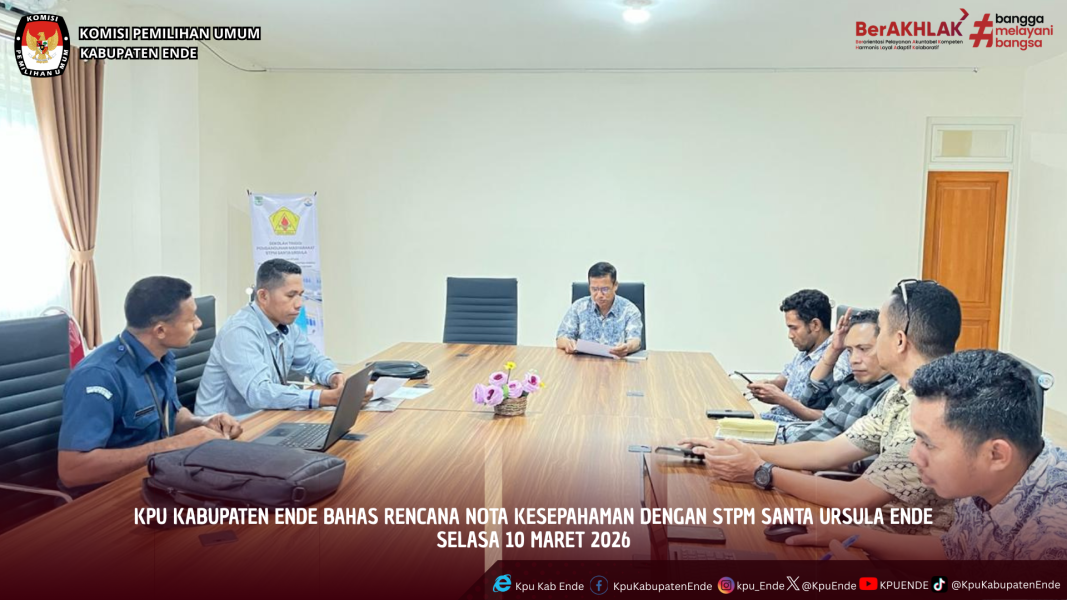 Anggota Komisi Pemilihan Umum (KPU) Kabupaten Ende Divisi Sosialisasi, Pendidikan Pemilih, Partisipasi Masyarakat, dan Sumber Daya Manusia, Kornelius Sumbi bersama staf yang membidangi melakukan kunjungan ke Kampus Sekolah Tinggi Pembangunan Masyarakat (STPM) Santa Ursula Ende dalam rangka membahas rencana Nota Kesepahaman (MoU) terkait pelaksanaan kegiatan sosialisasi dan pendidikan pemilih di lingkungan kampus. Kunjungan tersebut diterima langsung oleh Wakil Ketua Bidang Akademik STPM Santa Ursula Ende, Ngea Andreas, S.Sos., M.Si., bersama jajaran pihak kampus. Pertemuan ini bertujuan untuk menjajaki kerja sama antara KPU Kabupaten Ende dengan pihak perguruan tinggi dalam rangka meningkatkan pendidikan pemilih, khususnya bagi mahasiswa sebagai bagian dari pemilih pemula maupun pemilih muda. Dalam kesempatan tersebut, Kornelius Sumbi menyampaikan bahwa kolaborasi dengan perguruan tinggi merupakan langkah strategis dalam memperluas jangkauan pendidikan pemilih kepada generasi muda. Menurutnya, mahasiswa memiliki peran penting dalam membangun kesadaran demokrasi serta meningkatkan partisipasi masyarakat dalam proses pemilu. “Kegiatan ini merupakan bagian dari upaya pendidikan pemilih yang penting bagi mahasiswa. Melalui sosialisasi yang nantinya dilaksanakan, mahasiswa diharapkan dapat memahami proses demokrasi dan kepemiluan secara lebih komprehensif,” ujar Beliau. Sementara itu, Wakil Ketua Bidang Akademik STPM Santa Ursula Ende, Ngea Andreas, menyambut baik rencana kerja sama tersebut. Ia mengungkapkan bahwa pihak kampus sangat mendukung inisiatif KPU Kabupaten Ende dalam memberikan pemahaman mengenai demokrasi dan kepemiluan kepada mahasiswa. “Kami sangat senang apabila Nota Kesepahaman ini dapat dilaksanakan. Kampus kami memiliki keterkaitan dengan kajian keilmuan sosial dan politik, sehingga mahasiswa sangat penting mendapatkan pengetahuan secara langsung dari pihak penyelenggara pemilu,” ungkapnya. Dalam pertemuan tersebut, kedua belah pihak juga membahas rancangan Nota Kesepahaman yang telah disusun oleh KPU Kabupaten Ende untuk dikaji bersama. Pembahasan tersebut bertujuan agar substansi kerja sama yang akan dituangkan dalam MoU dapat dipahami dan disepakati oleh kedua lembaga. Melalui pembahasan ini, diharapkan nantinya tercapai kesepakatan bersama yang menjadi dasar pelaksanaan berbagai kegiatan sosialisasi dan pendidikan pemilih di lingkungan kampus STPM Santa Ursula Ende. Kerja sama antara KPU Kabupaten Ende dan STPM Santa Ursula Ende diharapkan dapat memperkuat literasi demokrasi di kalangan mahasiswa serta mendorong partisipasi aktif generasi muda dalam setiap tahapan penyelenggaraan pemilu. ....