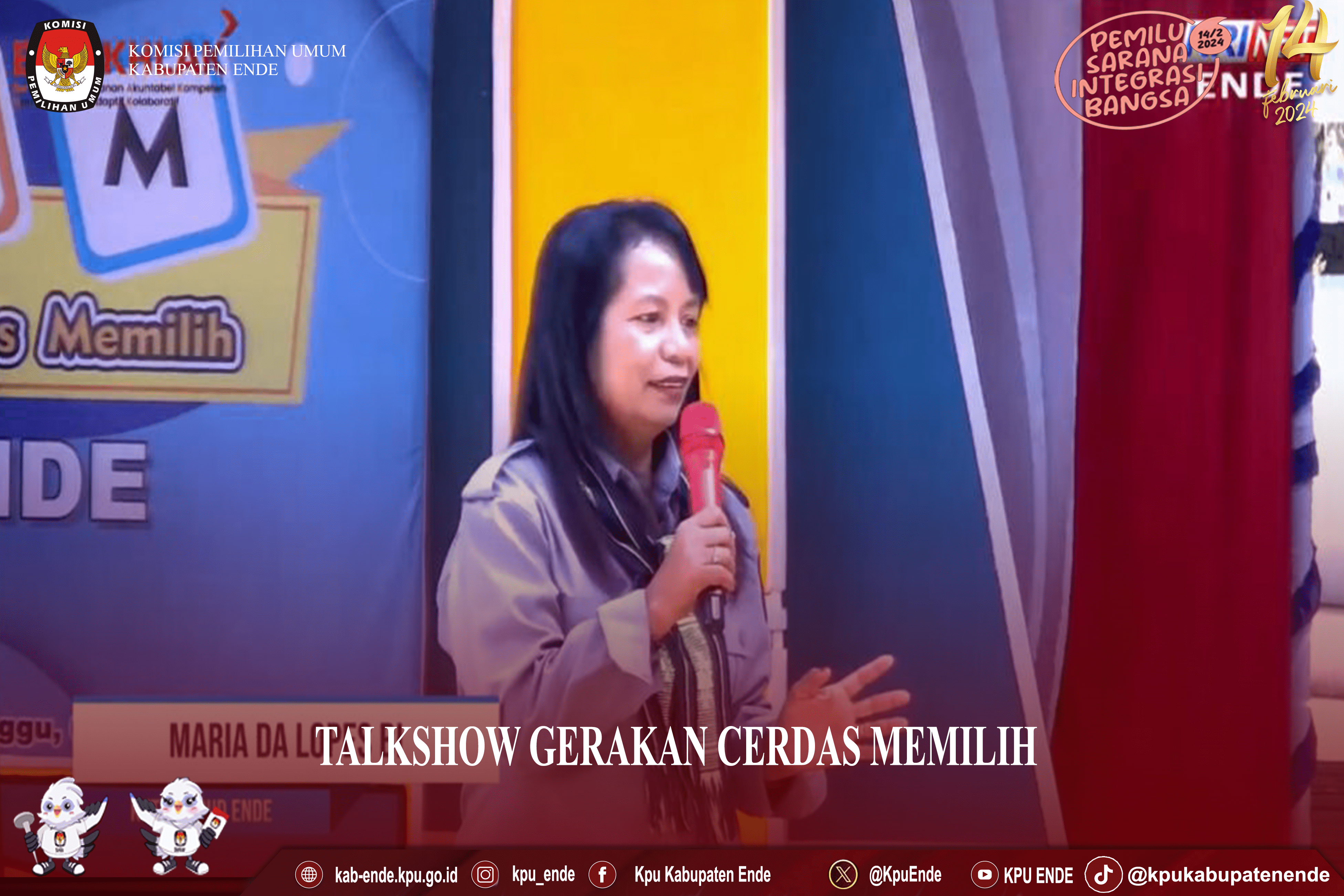 #TemanPemilih Ketua KPU Kabupaten Ende, Adolorata Maria Da Lopez Bi dan Anggota KPU Kabupaten Ende divisi Sosialisasi Pendidikan Pemilih Partisipasi Masyarakat dan SDM, Izmir Rizaldi hadir dalam kegiatan Talkshow Gerakan Cerdas Memilih yang diselenggarakan oleh RRI Ende, Minggu (03/09/2023). Dalam sambutan Ketua KPU Ende, Adolorata menyampaikan terima kasih kepada RRI Ende yang telah menyelenggarakan rangkaian kegiatan gerakan cerdas memilih diberbagai sekolah di Kota Ende. Selanjutnya, dalam acara Talkshow bertajuk Pemilu Pemilih Pemula dan Media Sosial, sebagai Narasumber, Izmir Rizaldi menyampaikan bahwa Pemilih Pemula dari Kalangan Mileneal dan Gen Z merupakan pemilih terbanyak dari jumlah Pemilih yang ditetapkan dalam DPT Kabupaten Ende, sebanyak 67.763 Pemilih Mileneal dan 56.116 Pemilih Gen Z dari jumlah DPT 211.004 Pemilih. Izmir juga menyampaikan Para pemilih kalangan Mileneal dan Gen Z dapat mencari informasi mengenai rekan jejak, visi misi dan program dari peserta Pemilu dengan menggunakan media sosial, melawan Hoax dan ujaran kebencian, tolak terhadap politik uang, dan mencari tahu mekanisme Pemilu yang benar. " Pemilih Pemula harus bisa menjadi Pemilih yang Cerdas" pungkas Izmir.