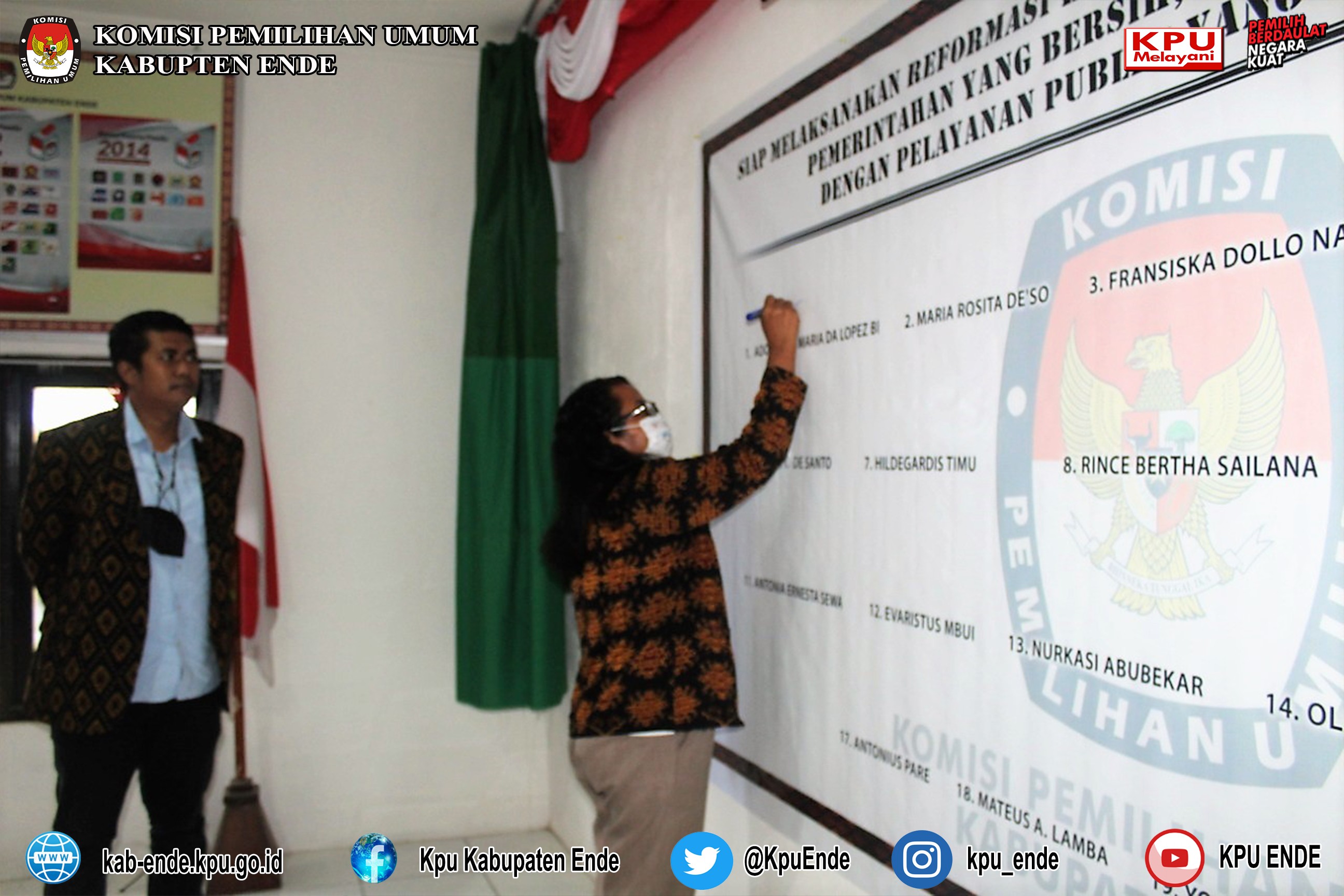 Selanjutnya Ketua Tim Reformasi Birokrasi yang adalah Sekretaris KPU Kabupaten Ende menyampaikan bahwa, Reformasi birokrasi sudah menjadi sebuah elemen penting, sekaligus merupakan pintu gerbang untuk memastikan bahwa akan terciptanya perbaikan pada tata kelola pemerintahan yang bermuara pada tingkat kepuasan publik. Reformasi Birokrasi bermakna sebuah perubahan secara menyeluruh dalam paradigma dan tata kelola pemerintahan Indonesia, sebagaimana tertuang dalam Peraturan Presiden No 81 Tahun 2010 tentang Grand Design Reformasi Birokrasi 2010-2025. Dalam rangka memastikan pengelolaan Reformasi Birokrasi yang efektif, pemerintah menetapkan perencanaan dan tata kelola Reformasi Birokrasi dalam sebuah dokumen perencanaan, yang dapat dipahami dan dilaksanakan oleh seluruh pihak dan stakeholder yang berkepentingan.