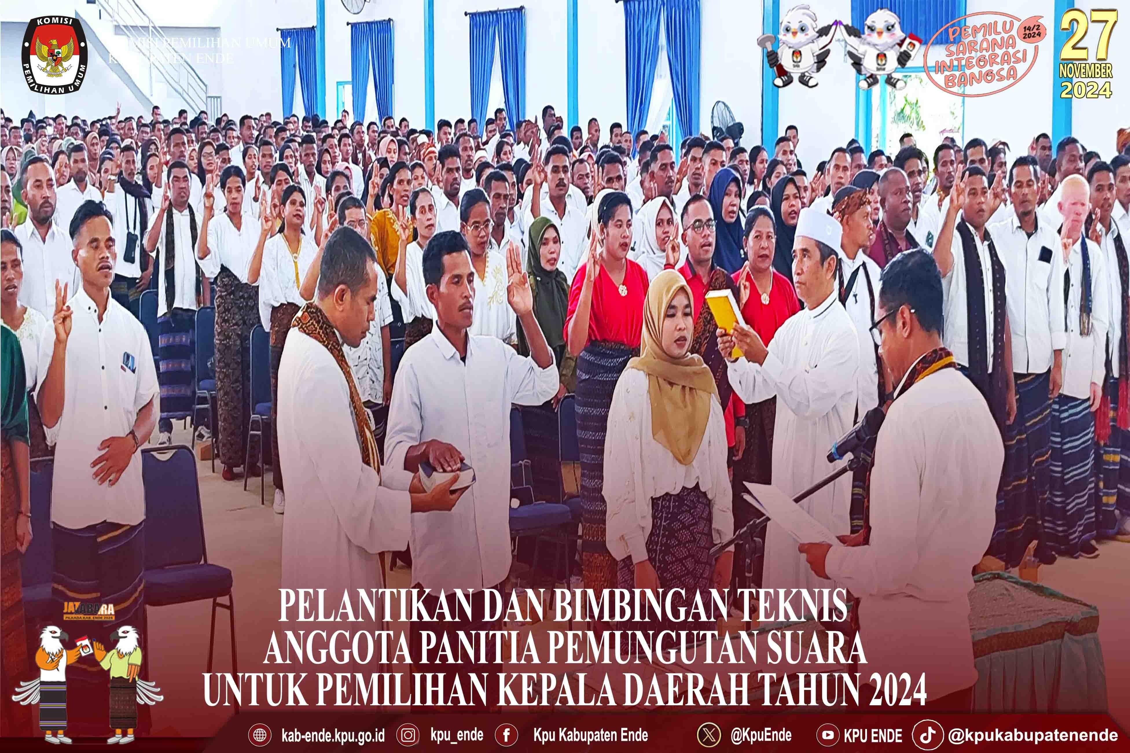 #TemanPemilih, Minggu (26/05/2024) bertempat di Aula Uniflor Ende, KPU Kabupaten ENDE melantik dan mengambil sumpah 834 Anggota PPS untuk pemilihan Gubernur dan Wakil Gubernur, Bupati dan Wakil Bupati.