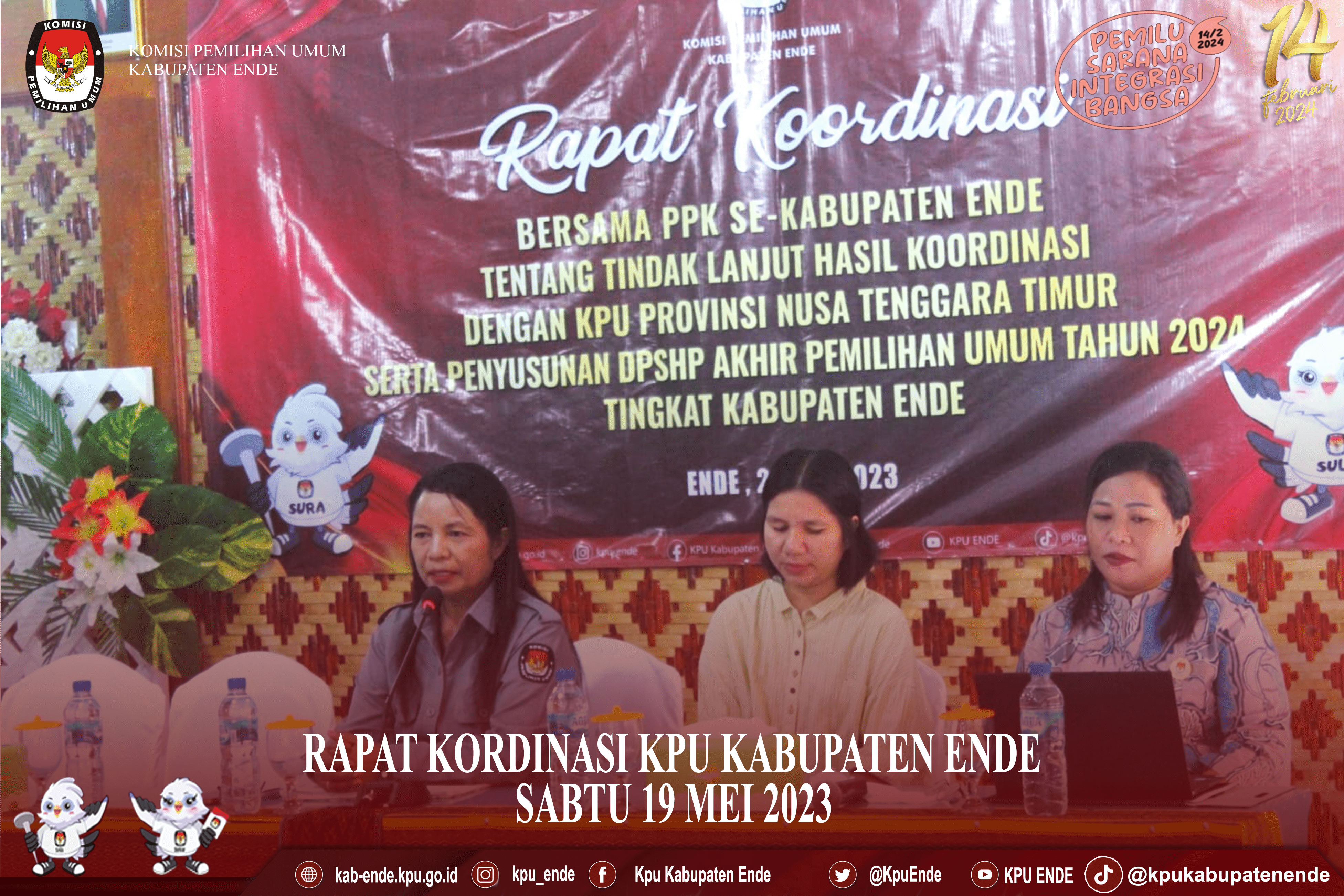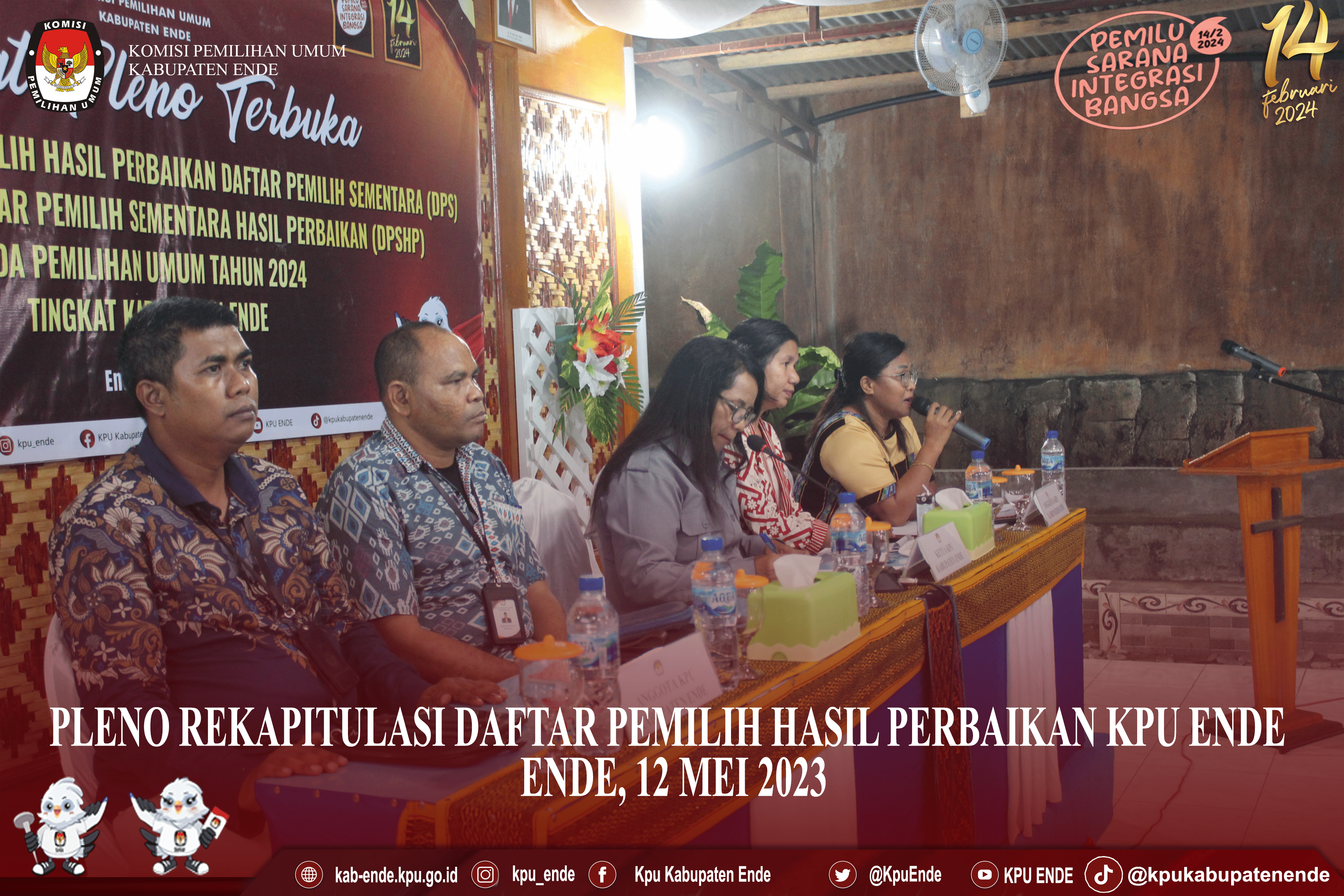 #TemanPemilih, PLENO REKAPITULASI DAFTAR PEMILIH HASIL PERBAIKAN KPU ENDE Menetapkan 211.353 Pemilih aktif dalam Daftar Pemilih Sementara Hasil Perbaikan pada Pemilu 2024 Komisi Pemilihan Umum Kabupaten Ende menetapkan sebanyak 211.353 warga Kabupaten Ende Daftar Pemilih Sementara Hasil Perbaikan (DPSHP) Pemilu Serentak Tahun 2024. Demikian hasil penetapan Rapat Pleno Terbuka Rekapitulasi Daftar Pemilih Hasil Perbaikan dan Penetapan DPSHP Pemilu Tahun 2024 Tingkat Kabupaten Ende yang dilaksanakan pada hari Jumat, 12 Mei 2023, mulai pukul 17.30 WITA – selesai. Bertempat di Pondok Bina Kerahiman Ende, jalan WIrajaya Ende. Rekapitulasi melibatkan 21 Panitia Pemilihan Kecamatan (PPK) yang terdiri dari Ketua Ketua PPK dan Anggota PPK yang membidangi Divisi Data). Selain itu juga mengundang jajaran Perwakilan partai politik beserta stakeholder terkait. Diantaranya, Badan Pengawas Pemilu (Bawaslu); Badan Kesatuan Bangsa dan Politik (Bakesbangpol); Kepala Lapas II-B, Kepolisan Resort Ende dan Kodim 1602 Ende Sementara dari KPU Ende hadir Ketua, Adolorata Maria DaLopez Bi, Anggota, Maria Rosita De’So, Fransiska Dolo Naga, Fransiskus Lothar Piara dan Izmir Rizaldi, Dalam pembukaan rapat pleno, Ketua KPU Ende, Adolorata Maria Da Lopez Bi mengungkapkan bahwa tahapan pemutakhiran data pemilih merupakan tahapan yang cukup panjang. “Serta melibatkan banyak sumber daya manusia, tenaga maupun anggaran,” katanya. Lebih lanjut, Adolorata menyampaikan penyusunan daftar pemilih dilakukan sejak Kemendagri menyampaikan DP4 (Data Penduduk Potensial Pemilih Pemilu-red) pada KPU pada 14 Desember 2022. DP4 selanjutnya disinkronisasi dengan daftar pemilih berkelanjutan di tahun 2022. Dari hasil sinkronisasi menjadi daftar pemilih, dilakukan proses pemutakhiran atau pencocokan dan penelitian (Coklit) oleh Petugas Pemutakhiran Data Pemilih (Pantarlih) pada 12 Februari sampai dengan 14 Maret 2023. “Berikutnya sejak 14 Maret 2023 disusun Daftar Pemilih Hasil Pemutakhiran (DPHP) hasil coklit. Data hasil coklit selanjutnya direkap di semua kecamatan. Dan pada 5 April 2023, KPU Kabupaten Ende melaksanakan Rapat Pleno Rekapitulasi DPS. Kemudian, pada tanggal 12 April 2023 sampai dengan tanggal 25 April 2023 KPU Ende melalui PPS mengumumkan Daftar Pemilih Sementara ditempat yang strategis untuk memudahkan masyarakat membaca pengumuman tersebut guna mendapatkan tanggapan dan masukan masyarakat. tutur Adolorata. Selanjutnya dilakukan pembacaan rekapitulasi DPSHP Pemilu Tahun 2024 tingkat Kabupaten Ende oleh Ketua PPK secara bergantian. Di penghujung acara, Adolarata membacakan hasil penetapan DPSHP Pemilu Tahun 2024 Tingkat Kabupaten Ende. “Hasil rekapitulasi DPSHP Pemilu Tahun 2024 Tingkat Kabupaten Ende yakni jumlah DPSHP 211.353 pemilih. Terdiri dari laki-laki sebanyak 100.747 pemilih, dan perempuan 110.606 pemilih. Dengan jumlah Tempat Pemungutan Suara (TPS) 982,” pungkasnya. #KPUKabupatenEnde #KPUMelayani #PemiluSerentak2023